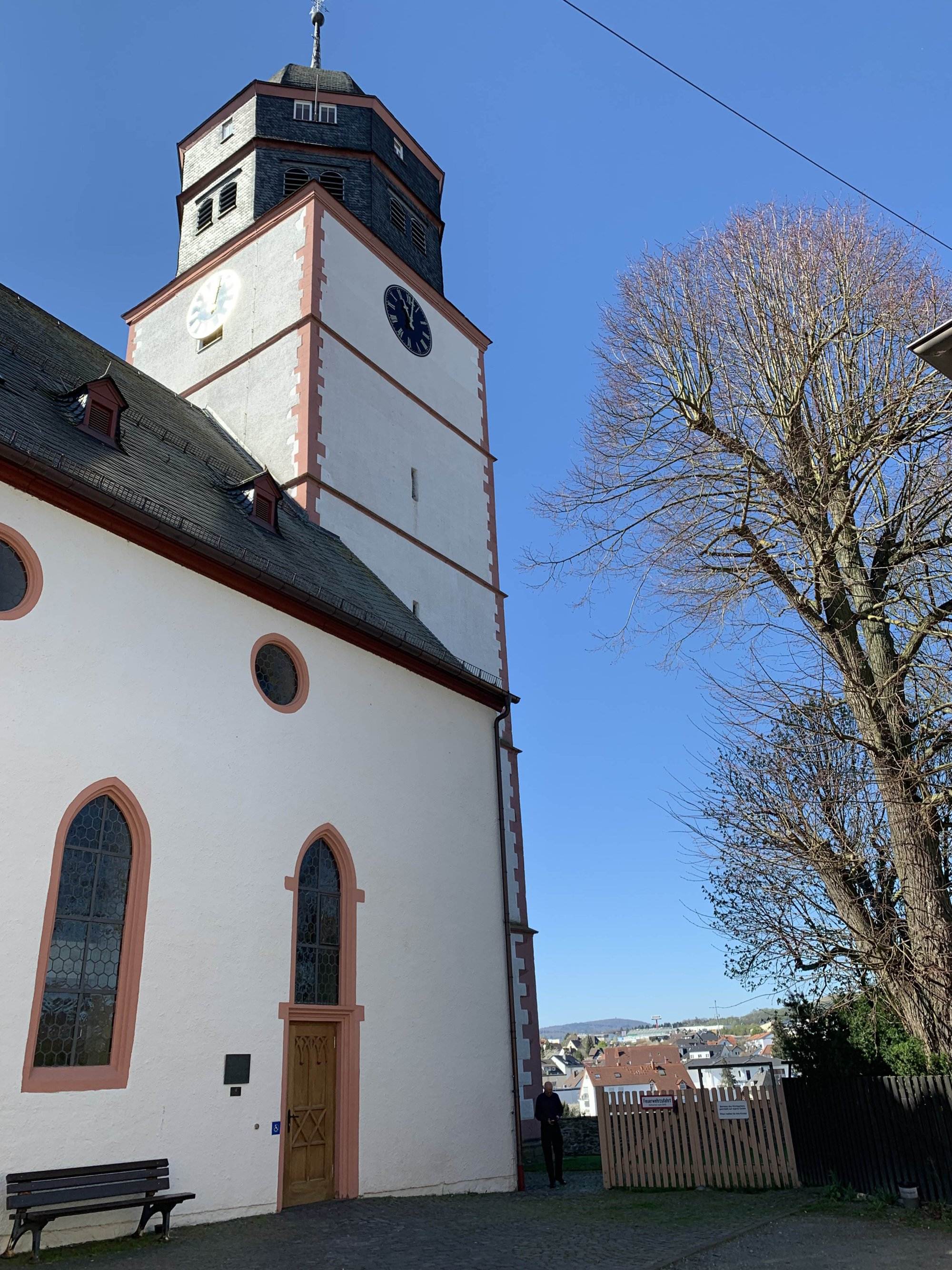 Die Laurentius-Kirche in Usingen ist ein großes, markantes Bauwerk der Spätgotik. Eine Besichtigung lohnt sich. Von dem Kirchgarten hinter der Kirche aus hat man einen guten Blick über Usingen.