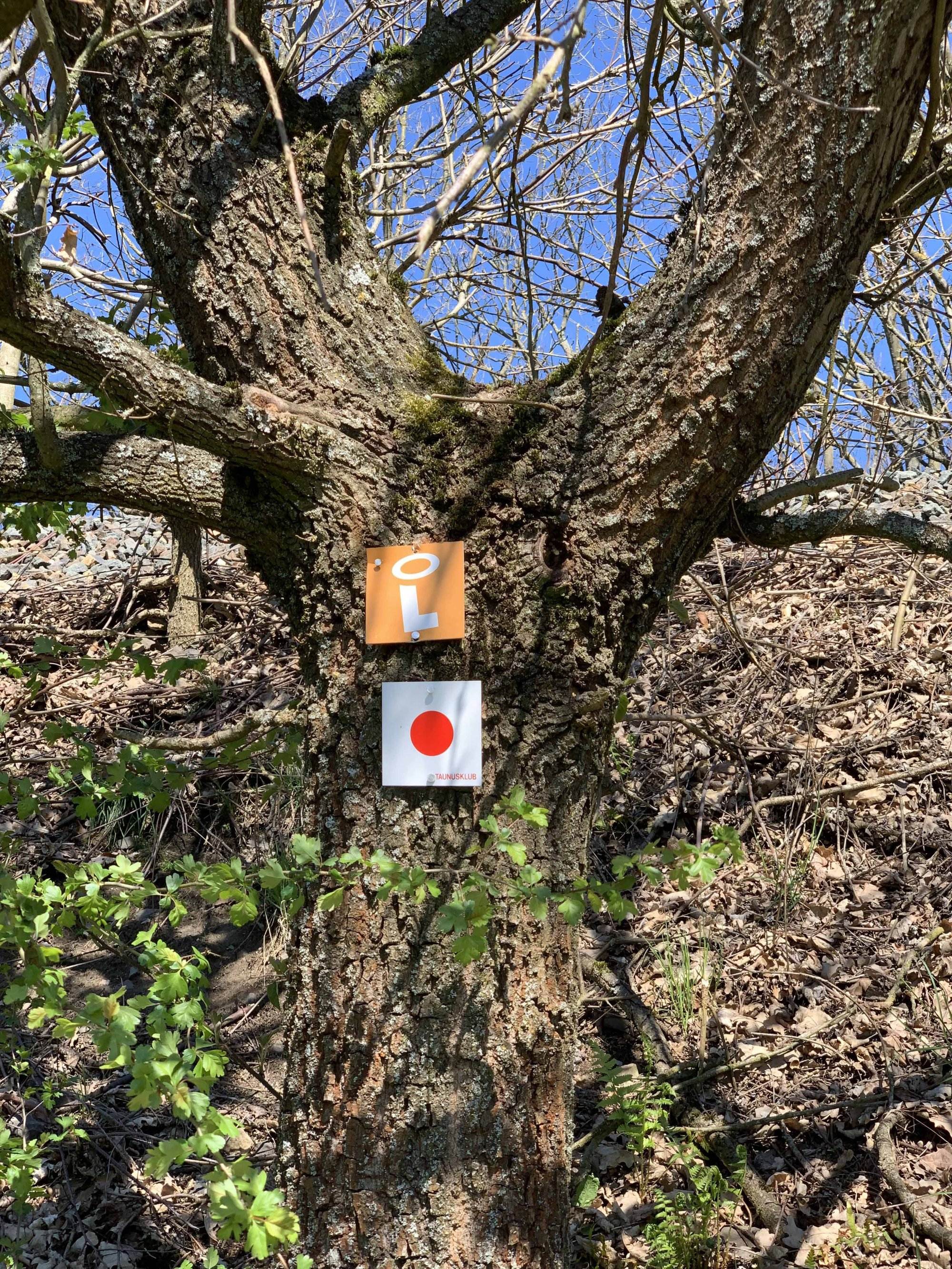 Dieser Pilgerweg im Taunus ist gekennzeichnet mit einem weißen L auf orangem Hintergrund. Das L ist mit einem Heiligenschein gekrönt. Da der Weg sehr gut ausgeschildert ist, konnten wir ihm gut folgen.